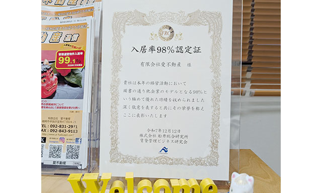福岡全体の平均は81.1%と言われています。当社では常に入居率90%以上をキープしています。